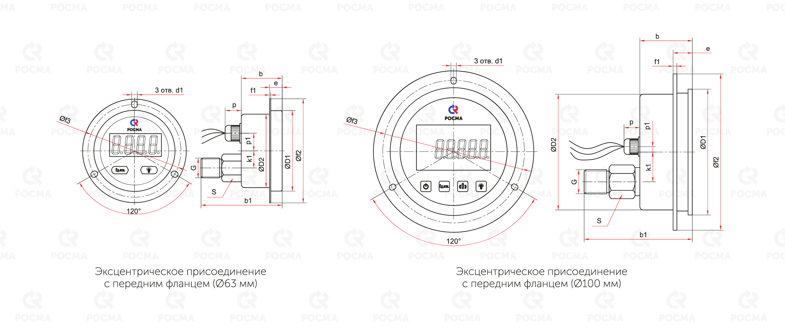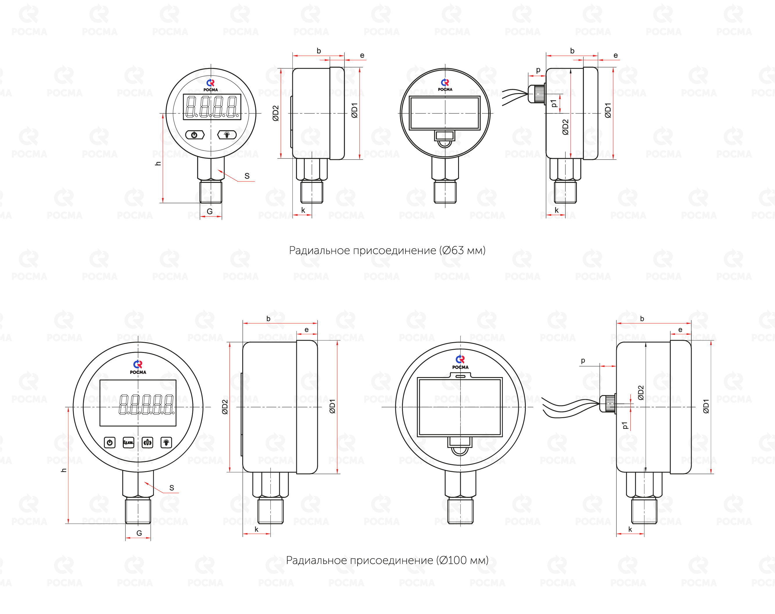 Дисплей: Ø63 − 4-разрядный; Ø100 − 5-разрядный