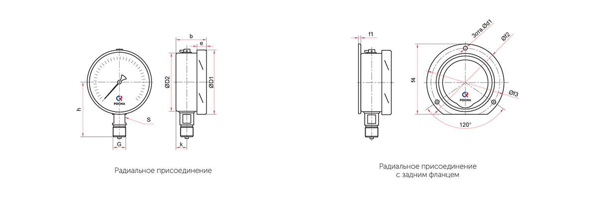 | Опция: изготовление манометров до 60 МПа без температурной шкалы на циферблате |