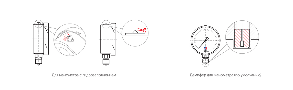 Прибор поставляется «сухой» (готовый к гидрозаполнению) или заполненный силиконом по требованию заказчика