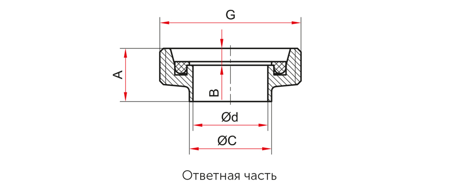 Ответная часть*: под приварку, нержавеющая сталь 08Х17Н13М2; в комплекте силиконовая прокладка. *заказывается отдельно