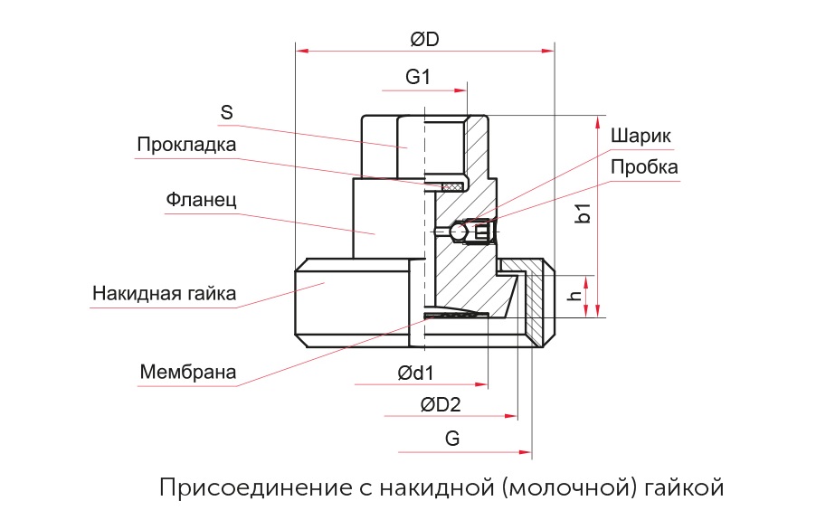 | РМ-M31 | DN25 | накидная гайка | внутренняя М20×1,5 (G½) — накидная гайка | 6755 |