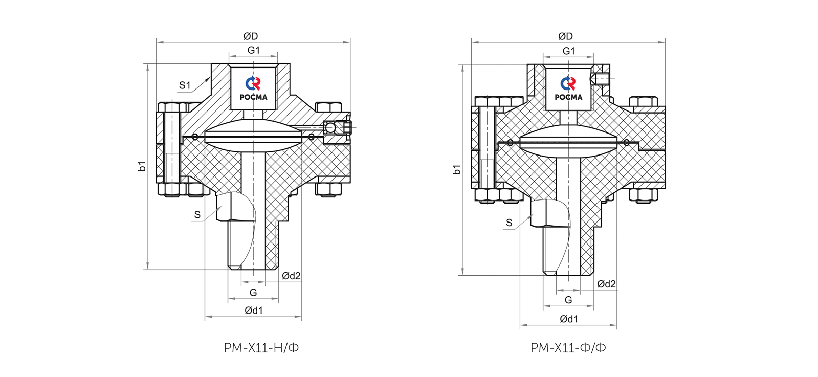 | РМ-Х11-Н/Ф | Ø80 | штуцерное | внутренняя М20×1,5 (G½) — наружная М20×1,5 (G½) | 14210 |